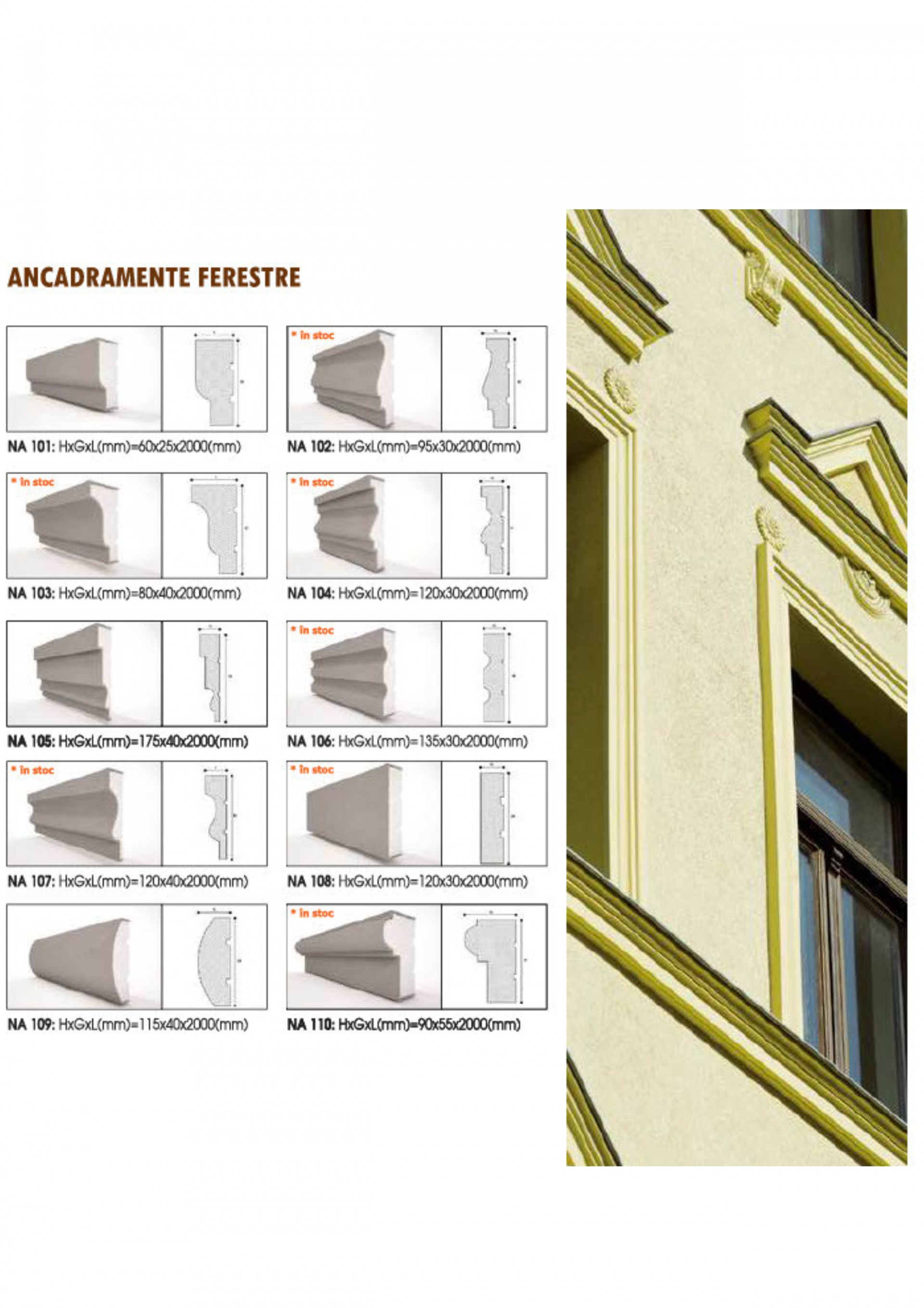 Ancadrament decorativ fereastra polistiren EPS, NA107, 120x40x2000 mm