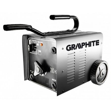 Aparatul de sudura cu transformator GRAPHITE este un instrument ideal pentru realizarea lucrarilor de sudarea atat semi-profesionale, cat si ocazionale. Datorita puterii de 230V poate fi alimentat de la o priza standard. Rotile si manerul confortabil permit ca dispozitivul sa fie usor de transportat, iar echipamentul complet cu cabluri, masca si ciocan permite ca lucrarea sa aiba loc imediat dupa achizitionarea aparatului. Utilizarea ventilatorului de racire si protectia de suprasarcina asigura instrumentului o functionare sigura si de lunga durata.