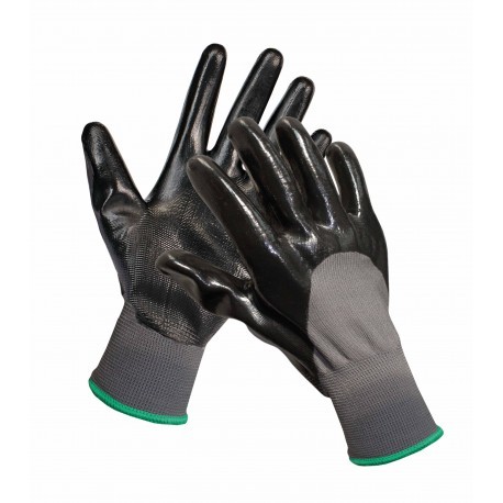 Mănuşi tricotate, fără cusături, acoperite 3 cu nitril negru pe palme şi degete. Manşetă elastică.