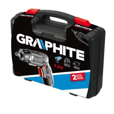 Surubelnita cu acumulator, 7.2V, 230rpm, cu 18 accesorii, in valiza de plastic, produsa sub brandul GRAPHITE.